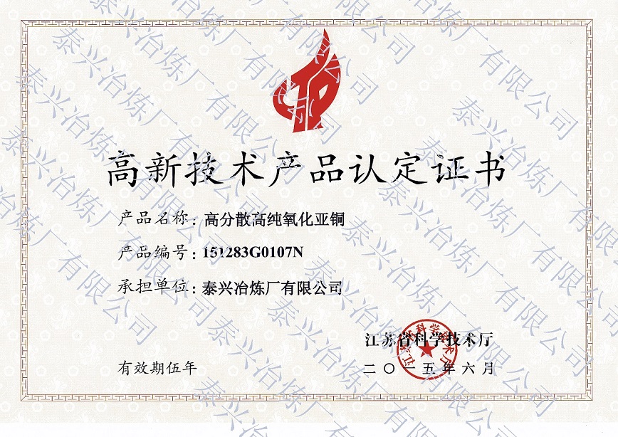• 我國高端的氧化亞銅生產基地